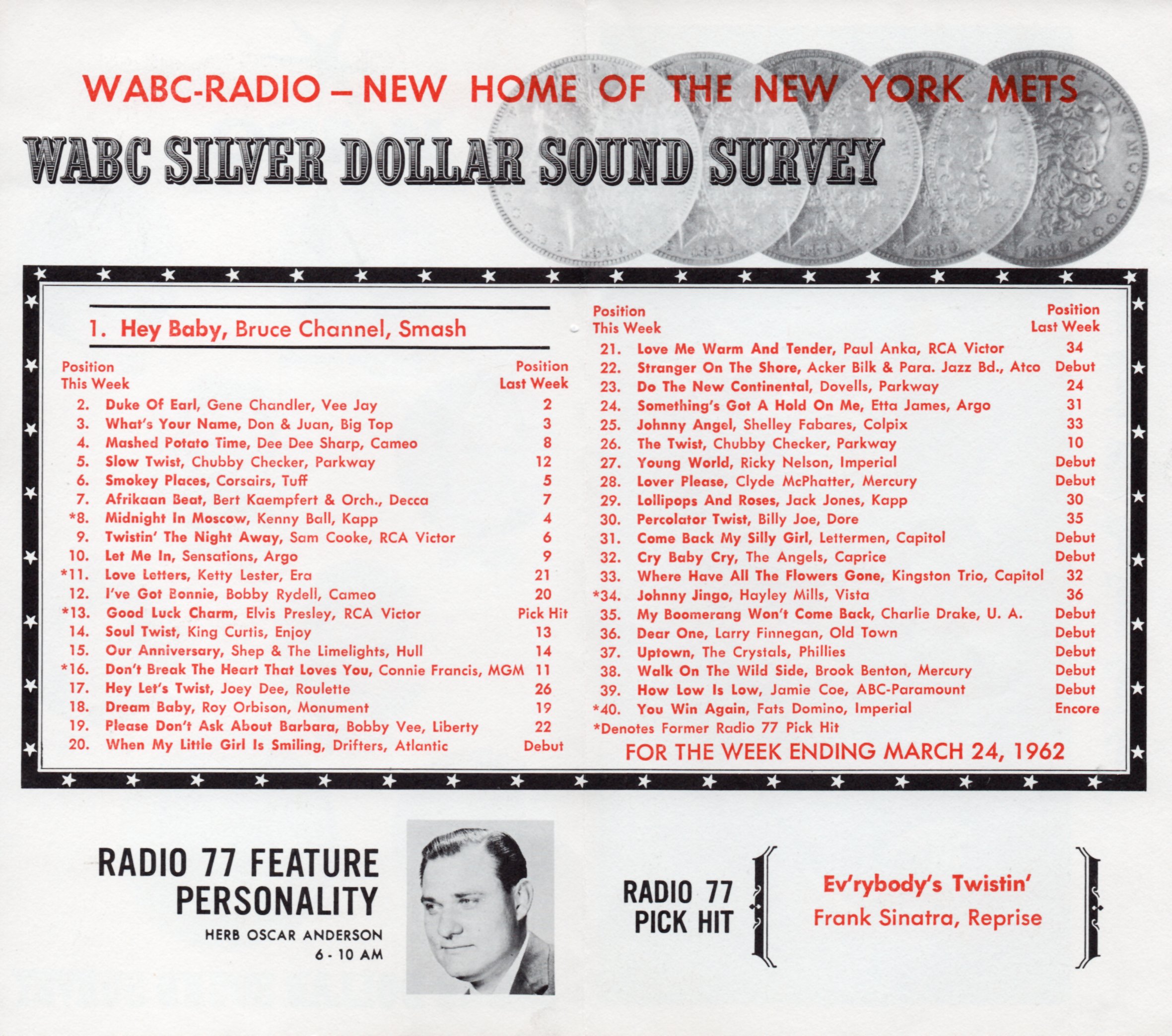 WABC Silver Dollar Sound Survey for week ending 3-24-1962 (front)