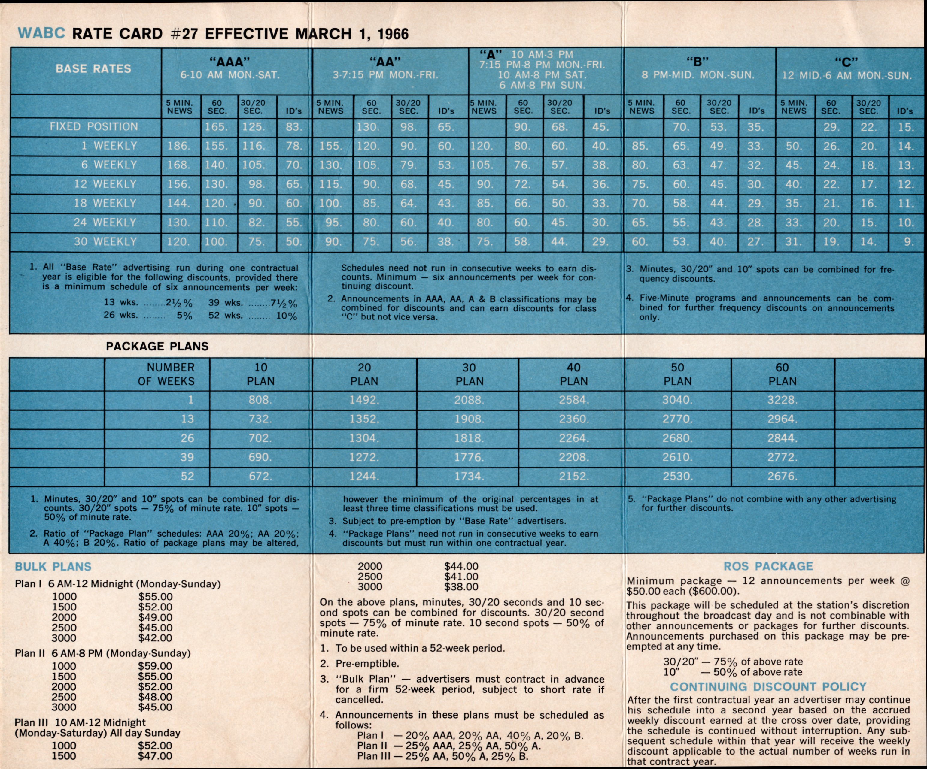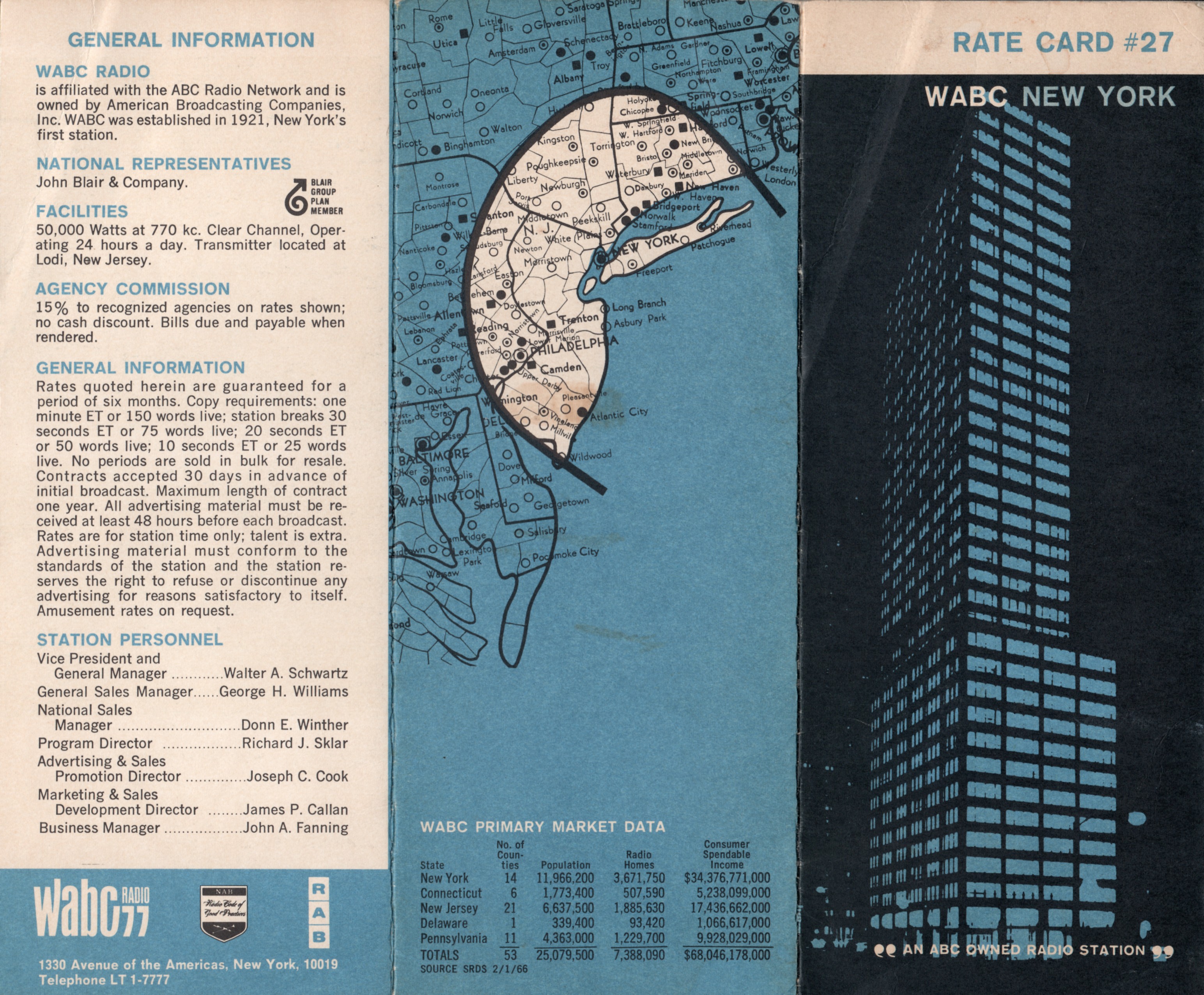 Schedule shown on web site musicradio77.com, the WABC Silver Dollar Sound Survey