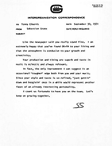 A Memo to Tommy from WOR-FM Program Director Sebastian Stone.