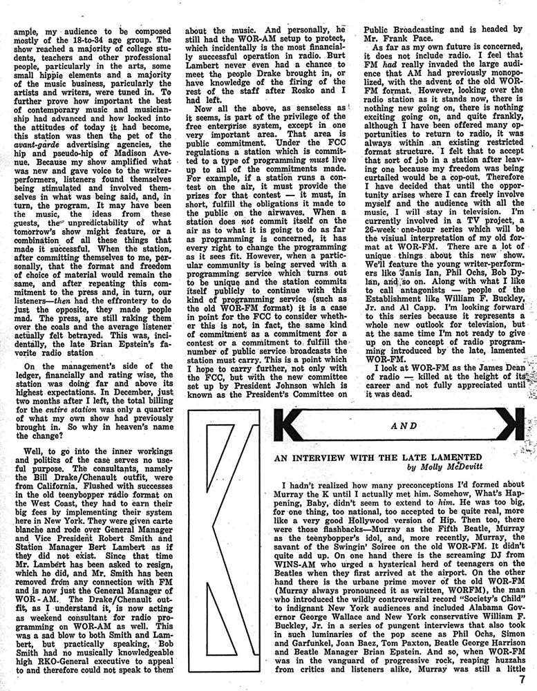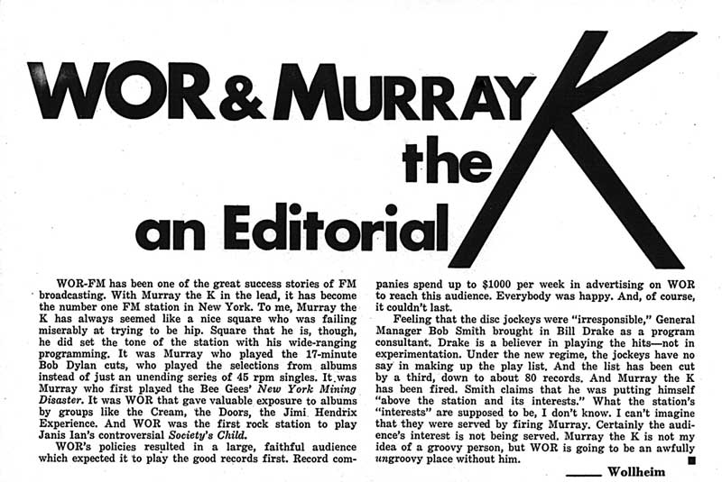 A very critical editorial on the firing of Murray the K and the Drake