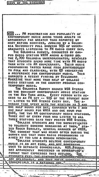 WOR-FM (or, as it was then called, "WOR Stereo") was the dominant contemporary