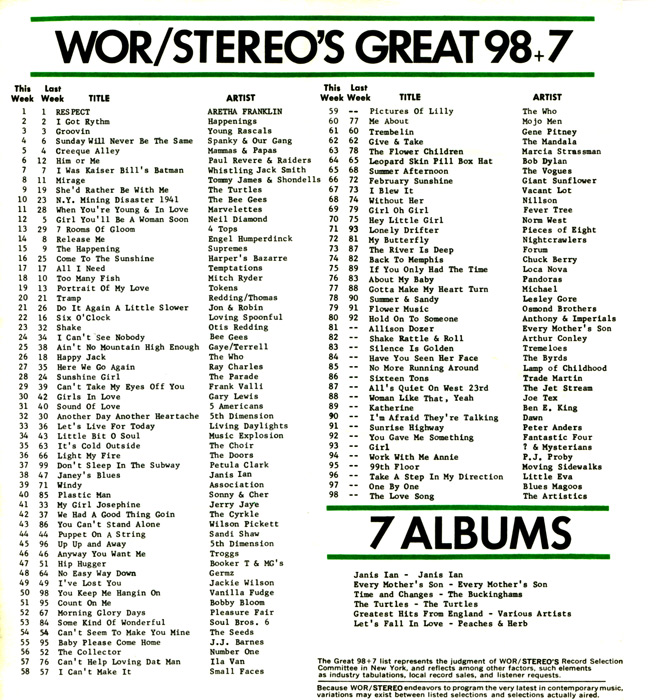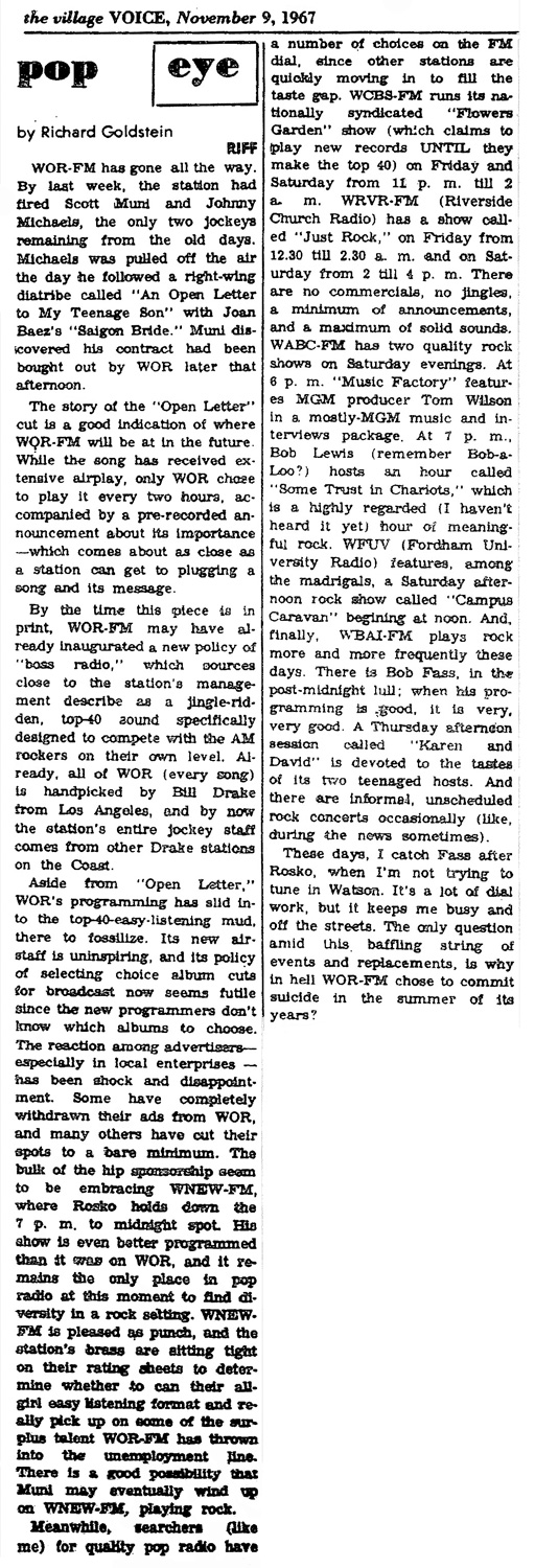 By this time, WOR-FM was under the control of Bill Drake and was playing "Open