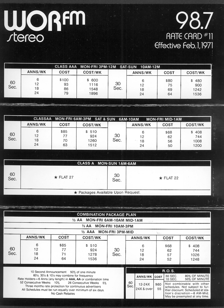 Advertising Rates at WOR-FM in February, 1971