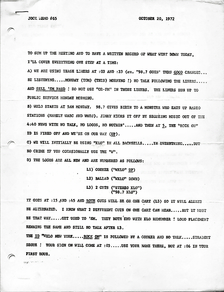 Memo to DJ's From Program Director Mel Phillips