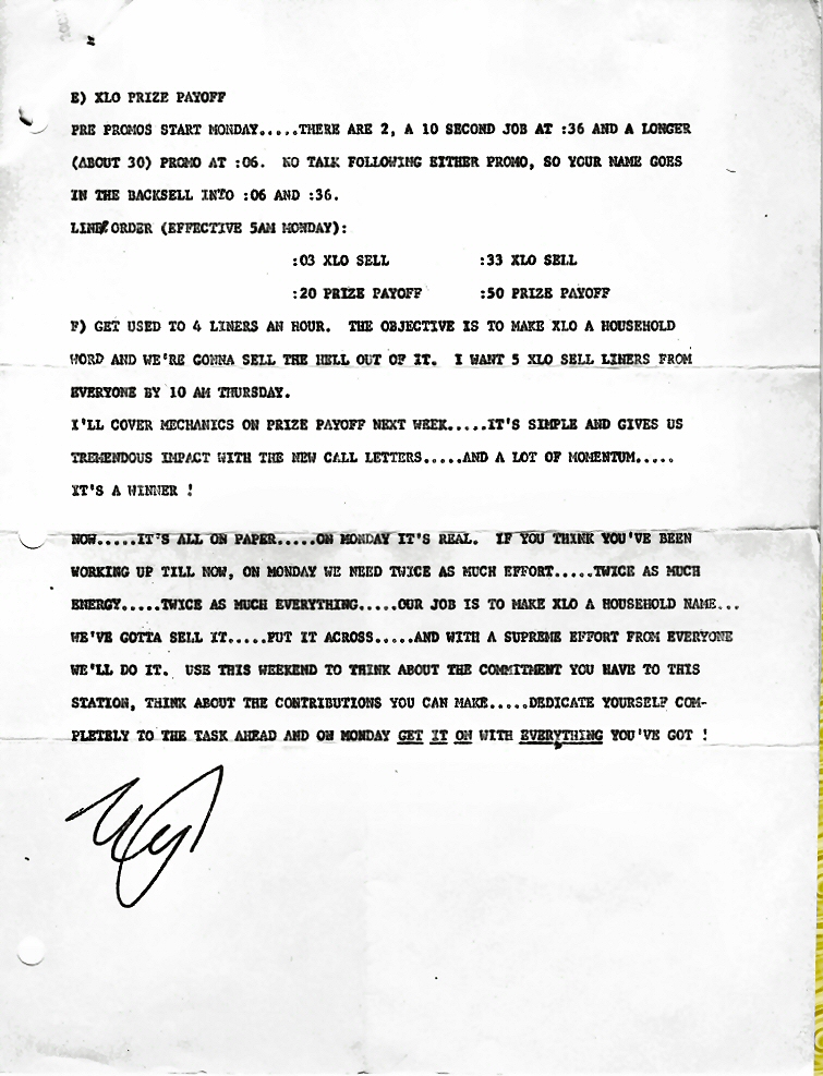 This is the memo sent to all the DJ's encouraging them to promote the new call