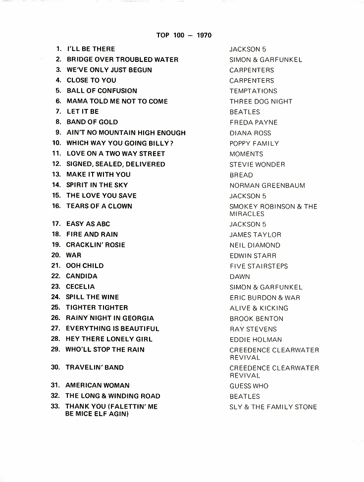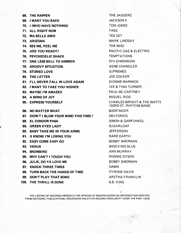 WOR-FM Top 100 of 1970